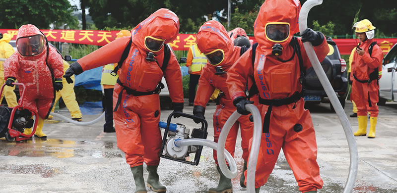 應(yīng)政府有關(guān)部門的要求,廣州途勝物流成立了危化品事故應(yīng)急搶險(xiǎn)救援隊(duì),并配備了重型防護(hù)服、輕型防護(hù)服、防爆工具、跨帶式防毒面具、全面罩 3M 防毒面具、防酸堿手套、防酸堿靴、護(hù)目鏡、強(qiáng)電電筒等專業(yè)的危化品搶險(xiǎn)救援裝備,主要負(fù)責(zé)危險(xiǎn)化學(xué)品運(yùn)輸事故應(yīng)急救援工作。公司總經(jīng)理呂偉權(quán)親任救援隊(duì)總指揮, 搶險(xiǎn)隊(duì)經(jīng)多年訓(xùn)練和多次參加搶險(xiǎn)救災(zāi)任務(wù),具備了較高的搶險(xiǎn)救災(zāi)專業(yè)技能,并積累了豐富的現(xiàn)場(chǎng)應(yīng)急救援經(jīng)驗(yàn)。